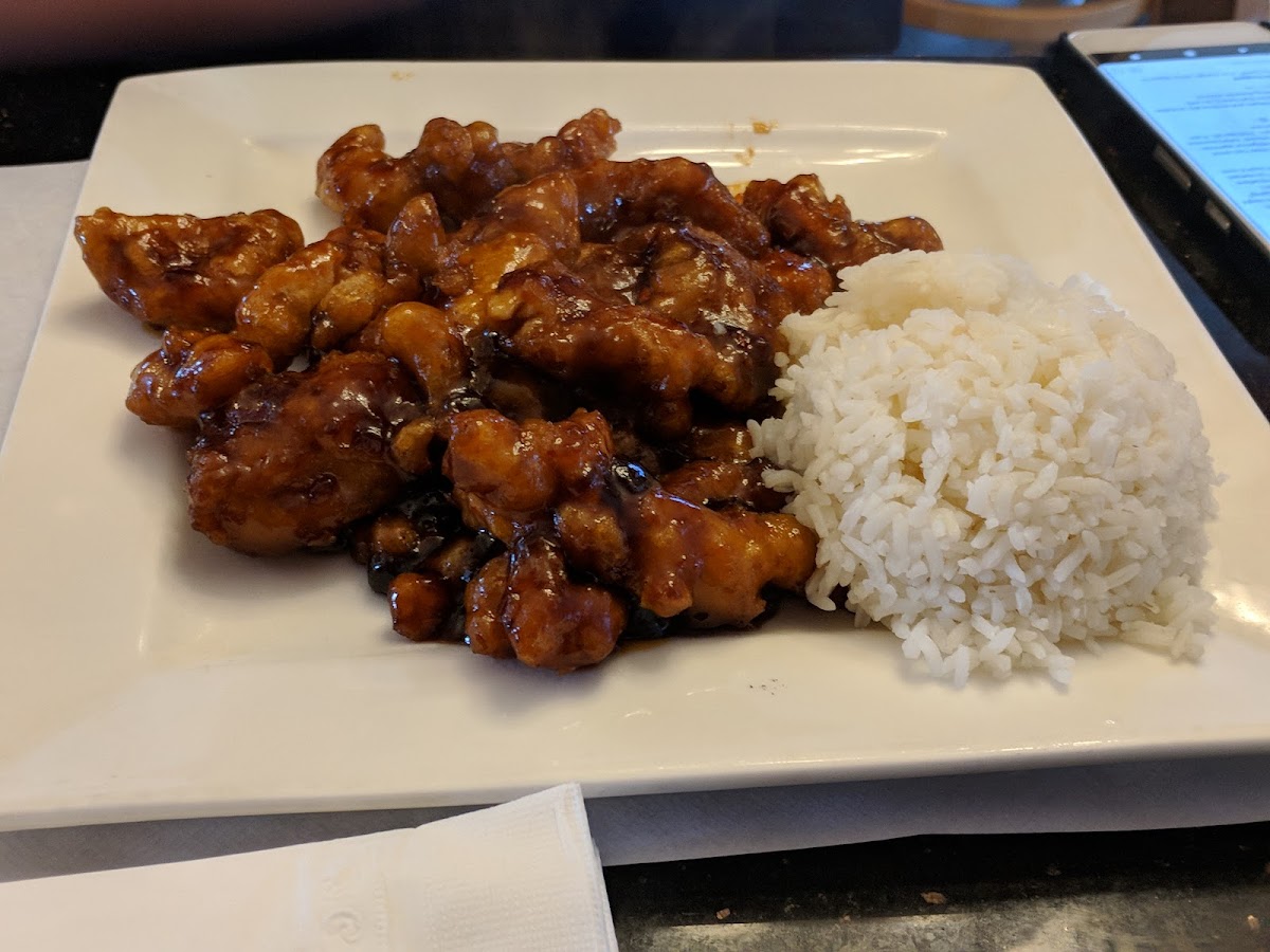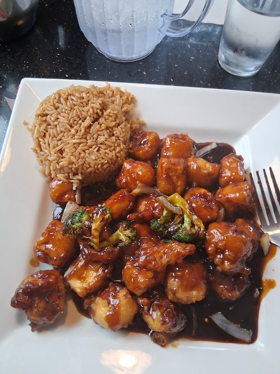 The general Tsos tofu was awesome!! 9/10! Super crispy outside, soft inside and the sauce was full of flavor ! Could've been a little more spicy, but I just got some chili oil to add to it. Excellent service, they even made their own hot mustard in house! They bring out egg drop soup to start, which wasn't bad at all and I'm usually not a fan. Not a big fan of the pot stickers or the crab Rangoon. Barely any filling & just not my fav. I THINK I left my denim top here, if I did I will come back for it.